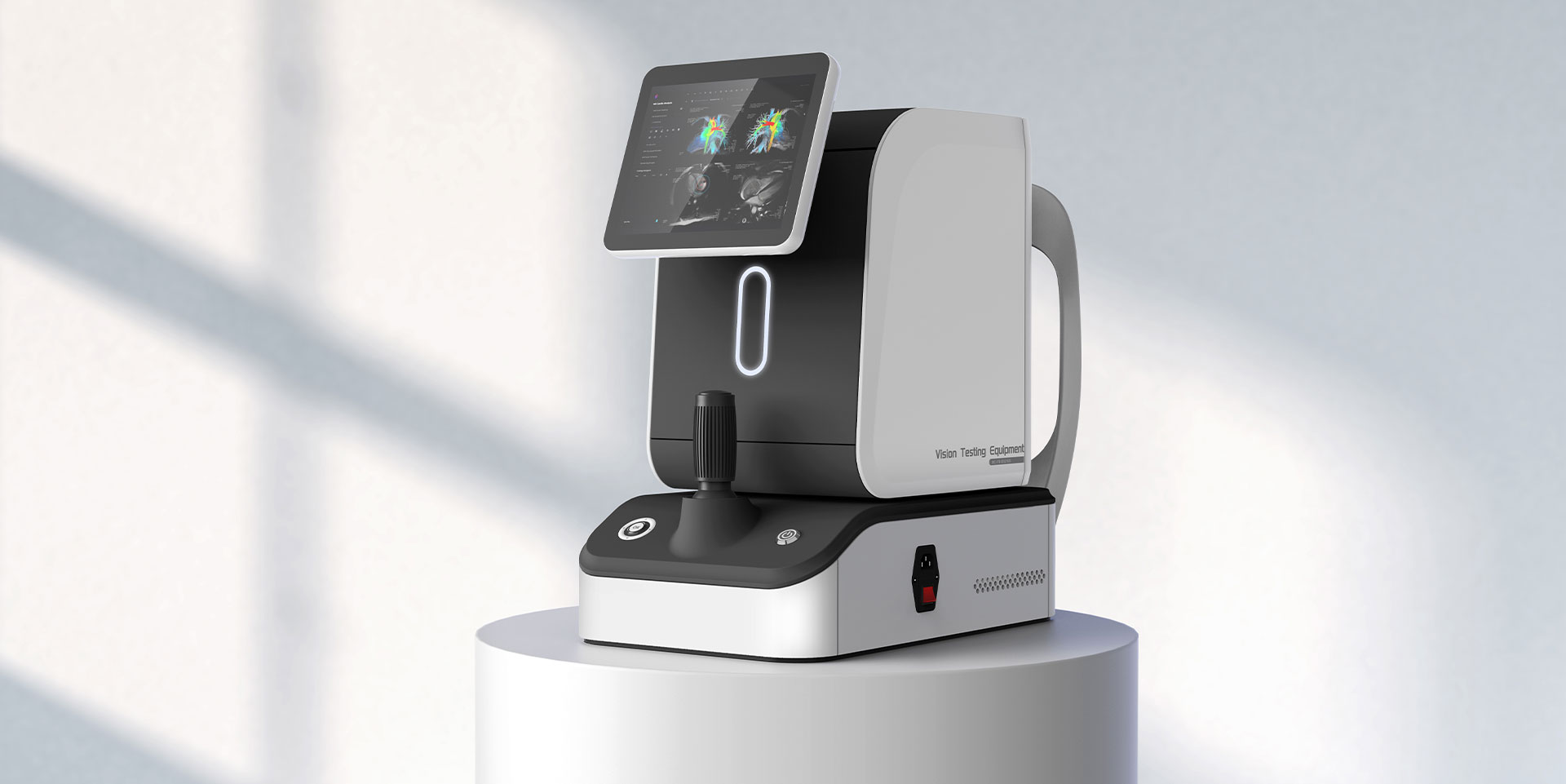 視力檢查對于各年齡層的人都很重要,它有助于及時發現和處理視力問題。這款視力監測儀的設計簡約現代,營造專業、穩重的視覺感受,顏色方案上選擇黑白搭配,突出產品的層次感。