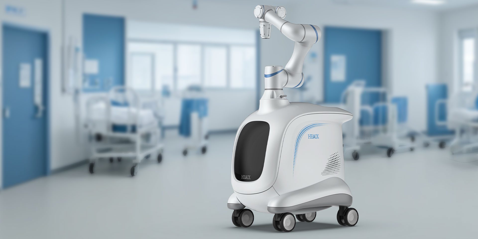 這款骨科手術(shù)機(jī)器人整體設(shè)計(jì)簡(jiǎn)潔大方,線條流暢,彰顯科技感與專業(yè)感。機(jī)身主體采用純凈的白色,這一經(jīng)典的醫(yī)療色彩,不僅傳遞出潔凈、安全的理念,也與醫(yī)院的整體環(huán)境相適配,給患者帶來(lái)心理上的舒適與安心。在白色基調(diào)之上,點(diǎn)綴以藍(lán)色線條,藍(lán)色象征著冷靜與智慧,為機(jī)器人增添了一份靈動(dòng)與科技氛圍。